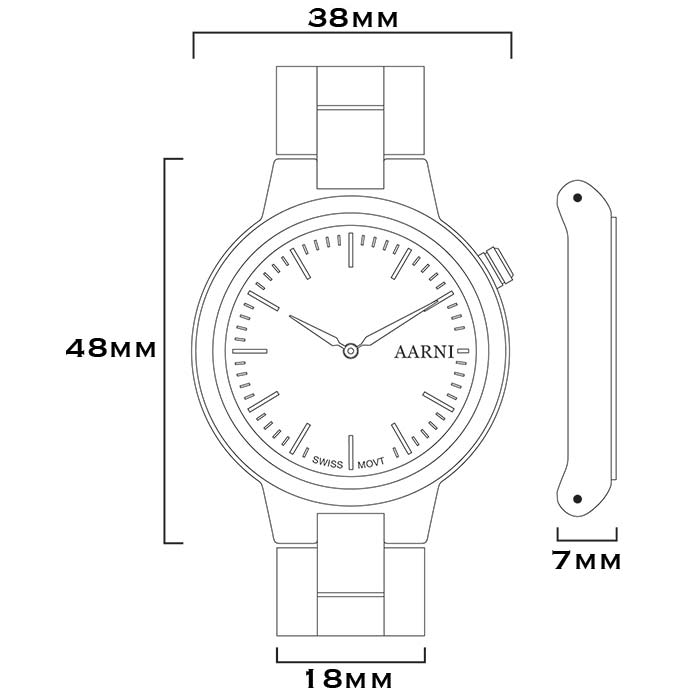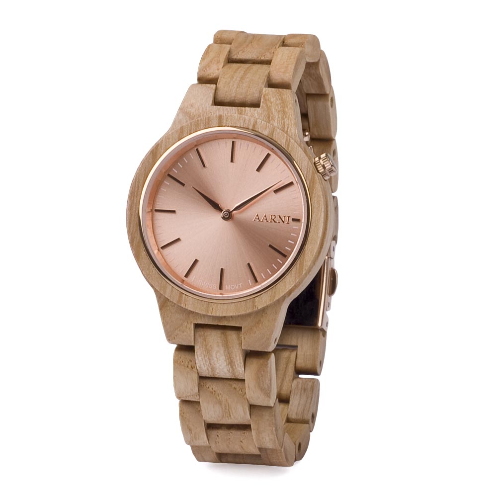 Aarni Vega Saar on varustatud Šveitsi ETA mehhanismiga, mis tagab suurepärase täpsuse. Saare materjal loob hele värvi ja atraktiivse loomuliku mustriga, mis muudab selle kella äärmiselt kauniks ja elegantseks. Hele värvus ja atraktiivne muster teevad saare populaarseks mööblitööstuses. Kombineeritud kuldse sihverplaadiga on see kell tõeline pilgupüüdja. Mineraalklaas ja **linkide rihm** teevad sellest kellast igapäevase kasutamise jaoks ideaalse.